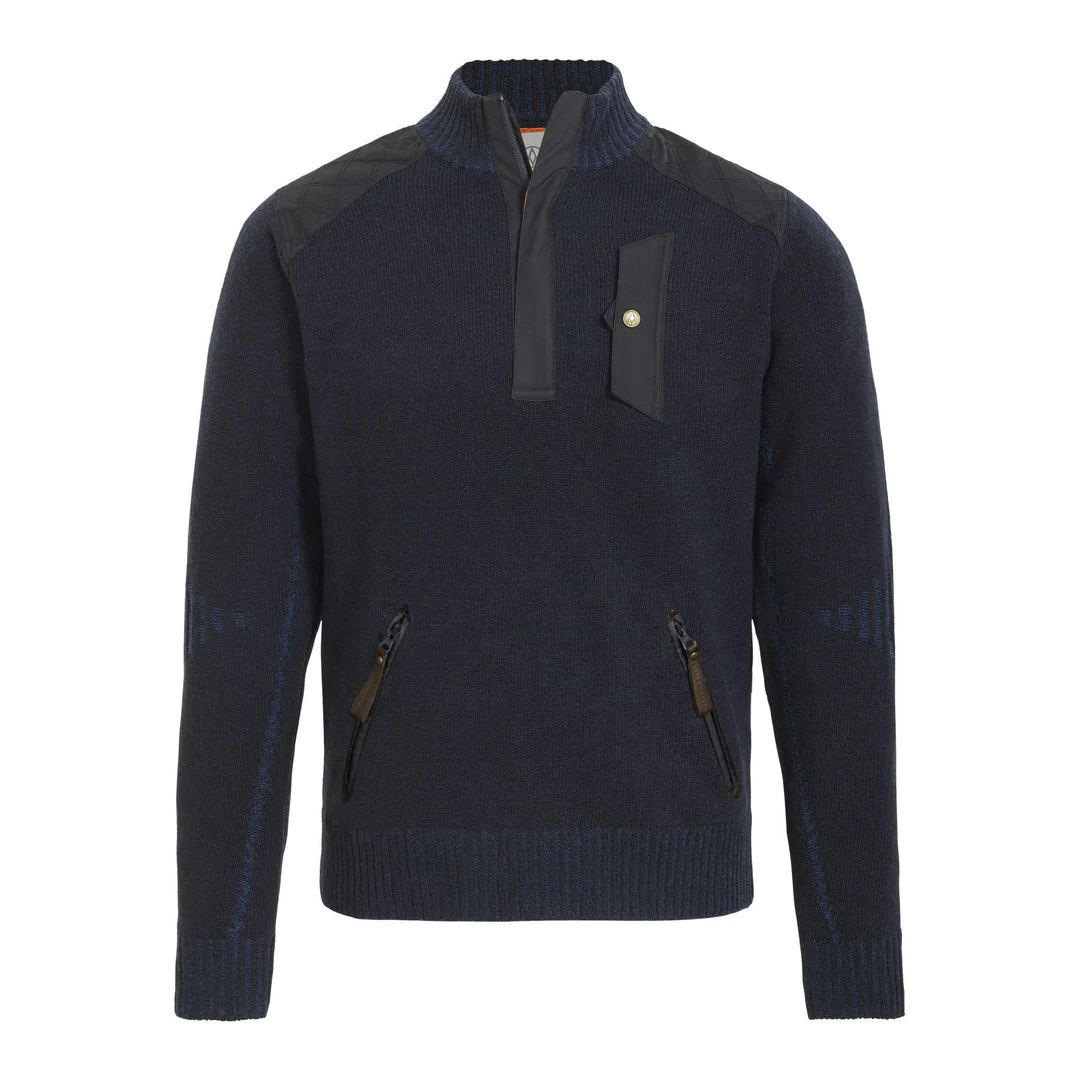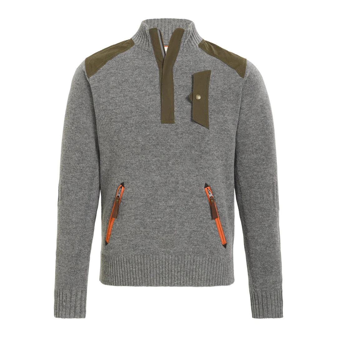 A staple of alpine sportsmen throughout the world, the protection, comfort, and durability of a proper sweater has accompanied mountain guides since the first ascents and descents by the Scandinavians of the 19th century. Combining the engineered comfort of traditional woolen knitwear with the protective qualities of rich waxed cotton from the storied British Millerain mill of the United Kingdom, the Alpine Guide Sweater is an authentic ski sweater ideal for sunny mountain days and mid-layer wear occasions.