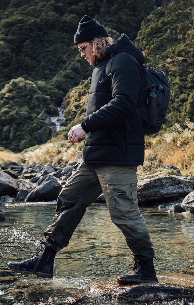 Named after the diverse nature of the Ohau area, this puffer jacket is lightweight and manoeuvrable, an armour for any season. With 100% post-consumer recycled wadding fill and a water resistant coating, you?ll stay warm in the wild, and dry in the wet. With a solid level of street crew, this jacket makes the perfect layer for in-between sweat sessions. Get out and get into it. Shell fabric: 100% Brushed Polyester with Water Resistant Coating | lining fabric: 100%  polyester| fill: 100% post-consumer recycled polyester plume | 350gsm fill | stitch-through baffle construction | fully detachable hood | collar fly for concealed hood cinch | elasticated cuff for extra warmth |  internal chest pocket  with built-in headphone passage| internal mesh glove pocket | internal welded cell phone pocket | internally fixed hem cinchOuter : 100% Brushed Polyester + Water Resistant CoatingLining : 100% PolyesterFill : 100% Post-consumer Recycled Polyester Wadding