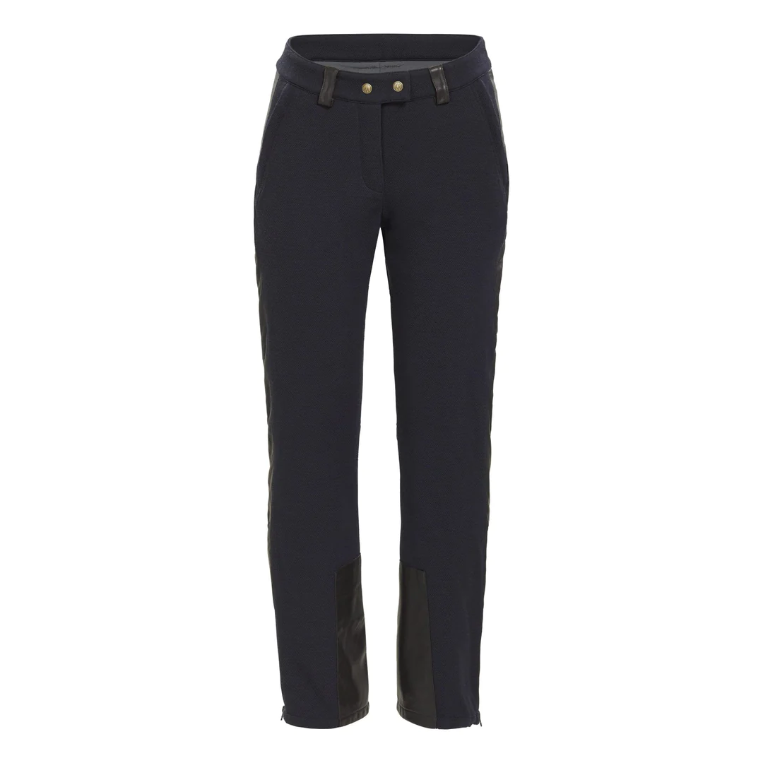It is in recognition and appreciation of such tailored sportswear garment innovation that Alps & Meters has designed the Twenties Trouser. Elegant, simple, and bold, the trouser is cut from a luxurious Italian stretch merino wool with windproof and waterproof protection for the traditional skier who appreciates the integrity and comfort of classic styling and construction.